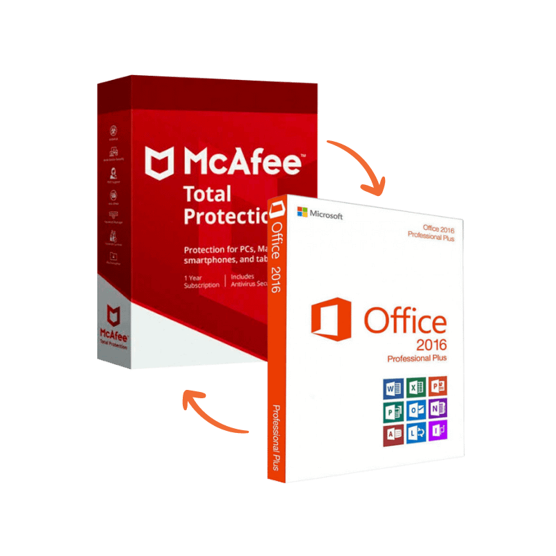 The Office 2016 Professional and McAfee Total Protection Bundle combines the efficiency of Office 2016 with the security of McAfee. Includes licenses, detailed guides and free support.